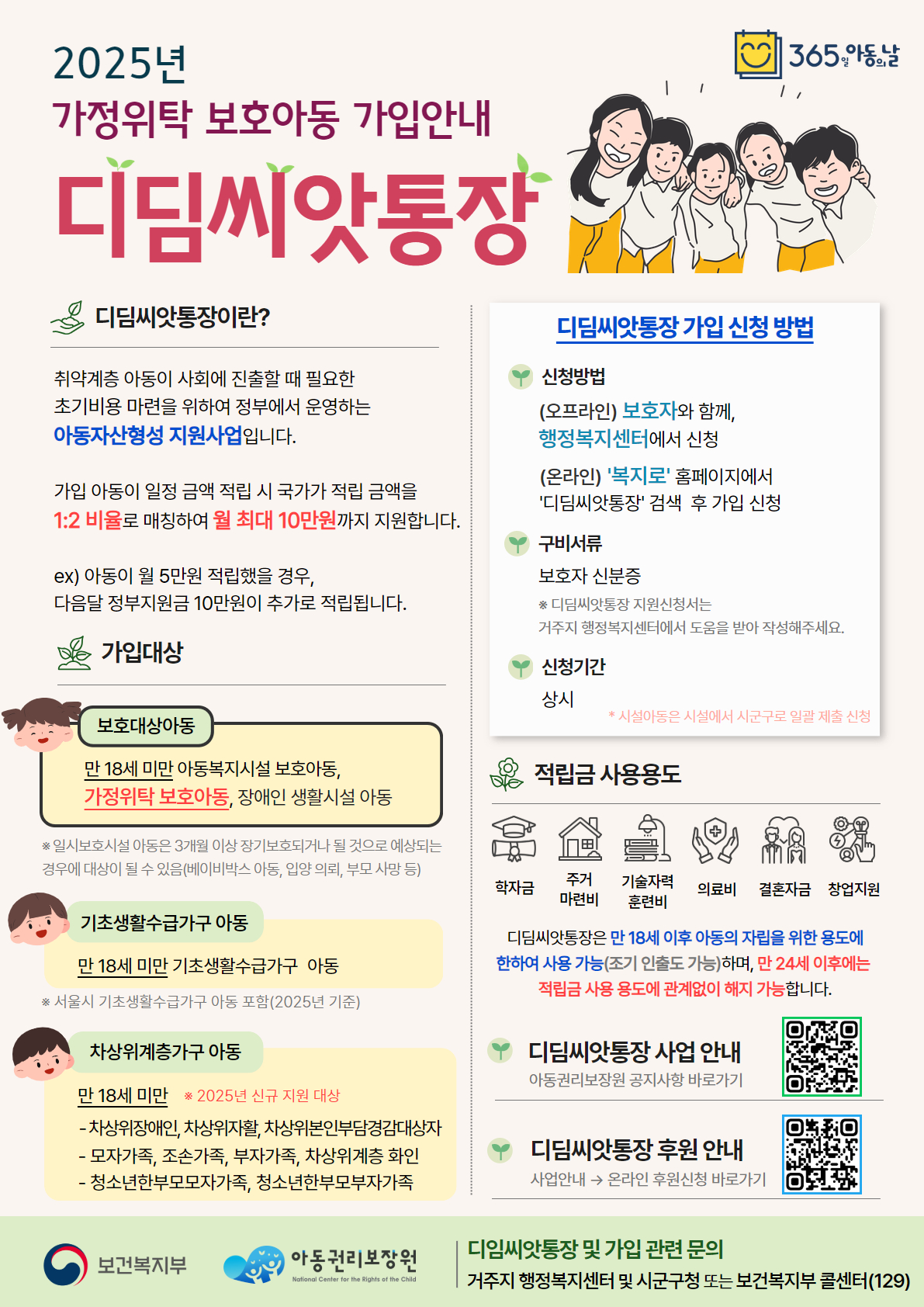 2025년 가정위탁 보호아동 대상 디딤씨앗통장 가입안내 포스터